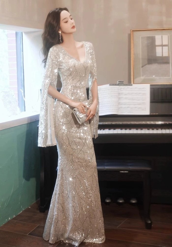• Sparkling Sequin Fabric: Adorned with intricate, all-over shimmering sequins, this gown catches light from every angle, creating a dazzling, red-carpet-ready glow that exudes luxury and glamour.