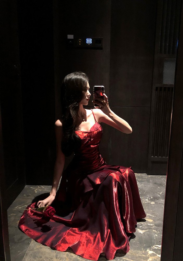 The delicate spaghetti straps elegantly frame the shoulders and neckline, while the seamless back design balances allure and sophistication, blending sensuality with timeless elegance.