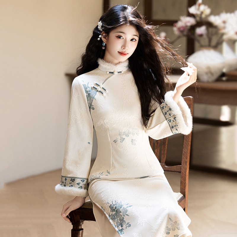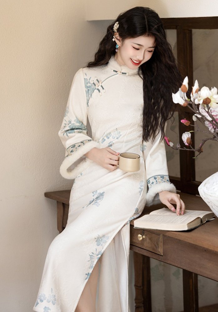 SKU: autumn-winter-cheongsam-08 Categories: Traditional Qipao Dresses, White Cheongsam Tags: Autumn Winter Cheongsam, Autumn Winter Qipao